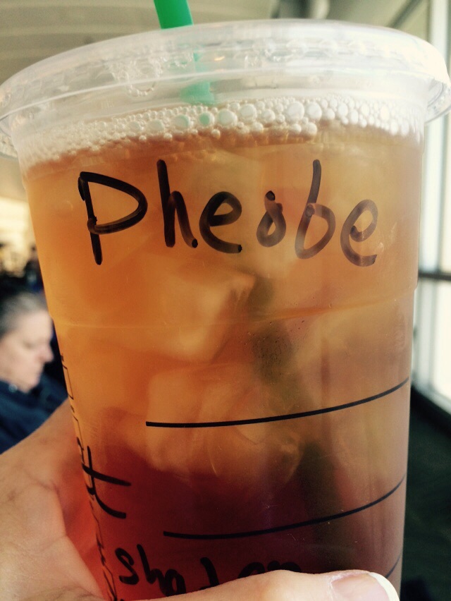 imageWith my business travel nearing its end, my husband suggested “Phoebe” for this last trip, and I thought that was pretty cool. The first morning’s iced selection had a pretty typical misspelling, and while I was a bit disappointed, I kept going. Once again, my circle had a field day encouraging me over social media, suggesting I change my name from this trip to Elphaba, Galinda, Heloise, and some other really cool names that I knew I just couldn’t pull off with a straight face. Others encouraged me to stick with it, saying that I was bound to come up with a real winner at some point.