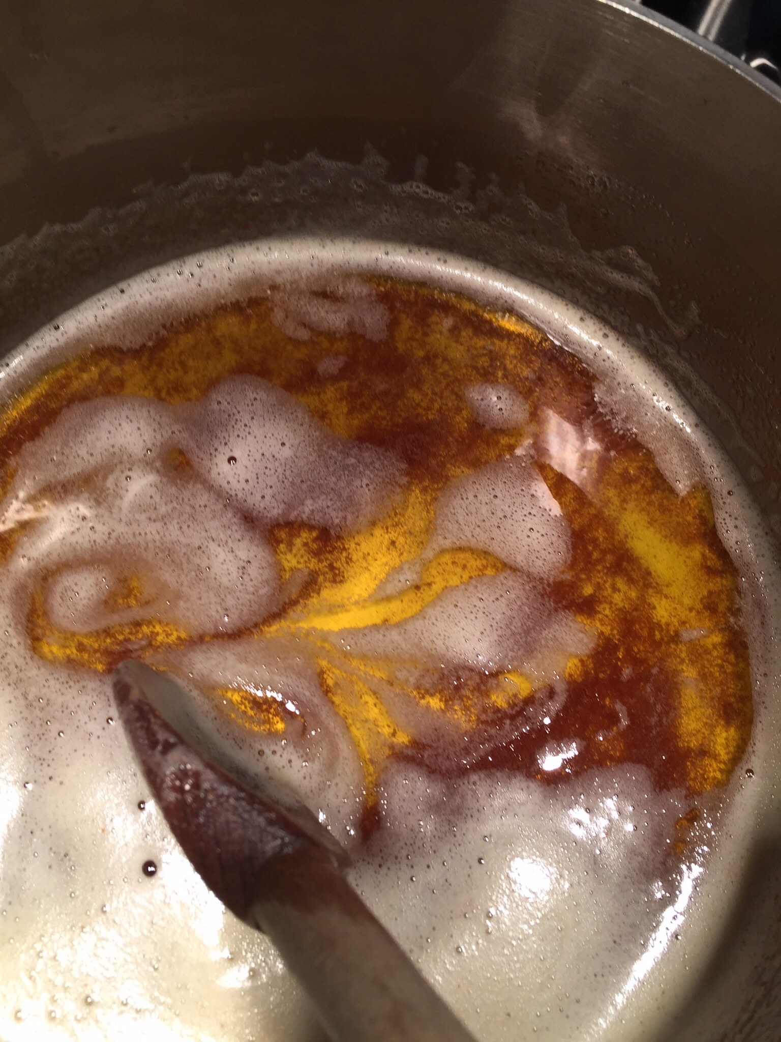Melt butter in medium saucepan over medium heat. Continue cooking, stirring often, until browned bits form at the bottom of pan. About 5-7 minutes.