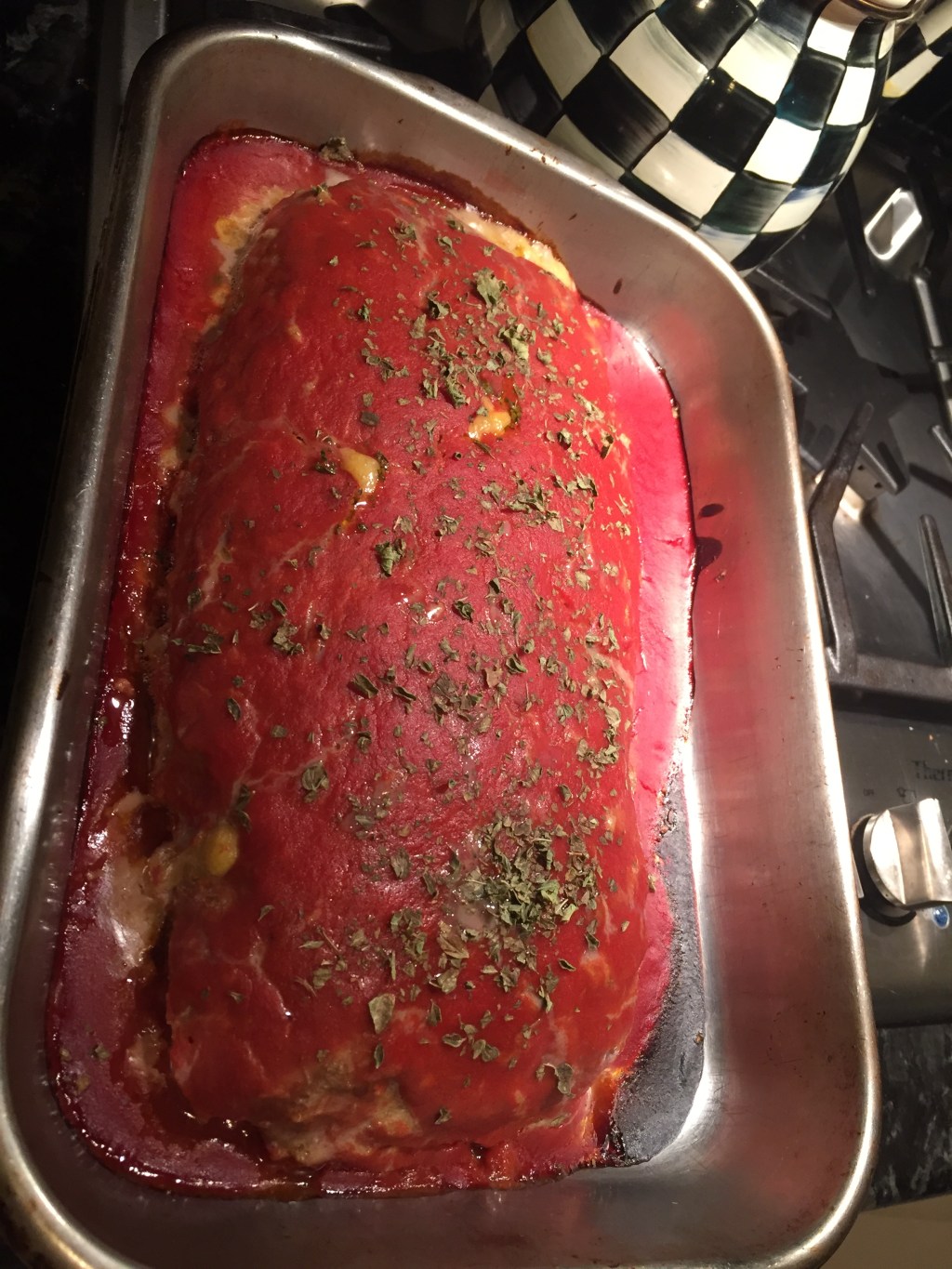Fast forward to his sophomore year, when he and his friends moved into a house in Isla Vista. One night he made this meatloaf. By the time it came out of the oven, all 7 of his housemates were in the kitchen, noses quivering. Our son ate his meal, and put the rest in the refrigerator with stern warnings about pilfering.